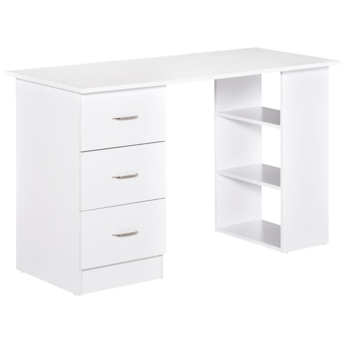 Homcom 120cm Computer Desk Writing Table Pc Workstation Study Laptop Stationery W/ 3 Shelf & Drawers White