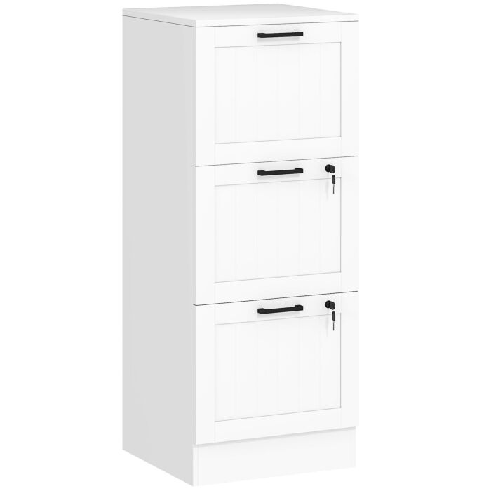 Homcom 3 Drawer Filing Cabinet With Lock, Office Storage Cabinet With Adjustable Hanging Bars For A4 Letter Size Files, White