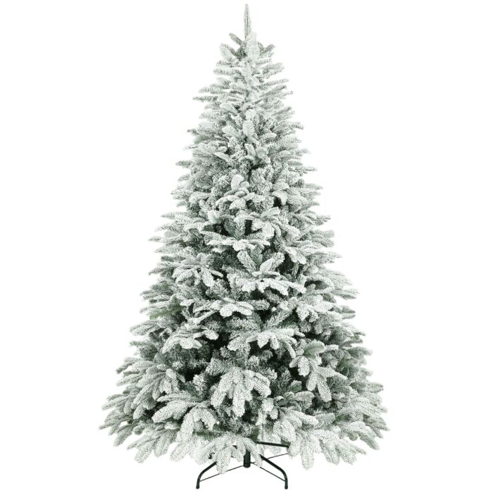 Homcom 7 Ft Artificial Flocked Christmas Tree With 1867 Branches, Hinged Xmas Tree With Foldable Metal Stand, Easy Assembly For Home Office Decor