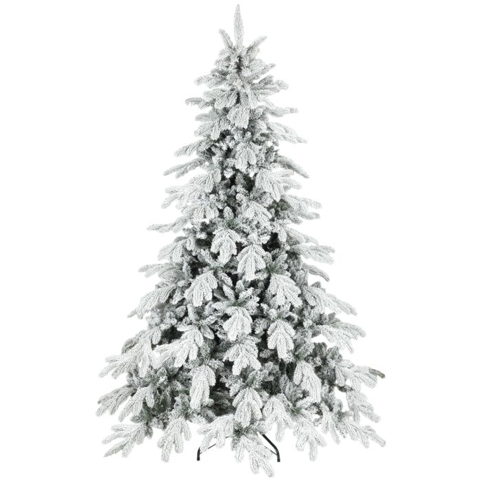 This Christmas, create a serene winter wonderland - in your own home, with this HOMCOM artificial Christmas tree. Sporting lush green branches in faux snow flocking, this is a wide and voluptuous piece: suitable for the season. The pre-attached hinges mean all you have to do is shape the tree quickly - frees up your time for family. The fire-resistant design offers peace of mind in the home (just don't expose close contact to naked flames!). Complete with a folding metal base.
