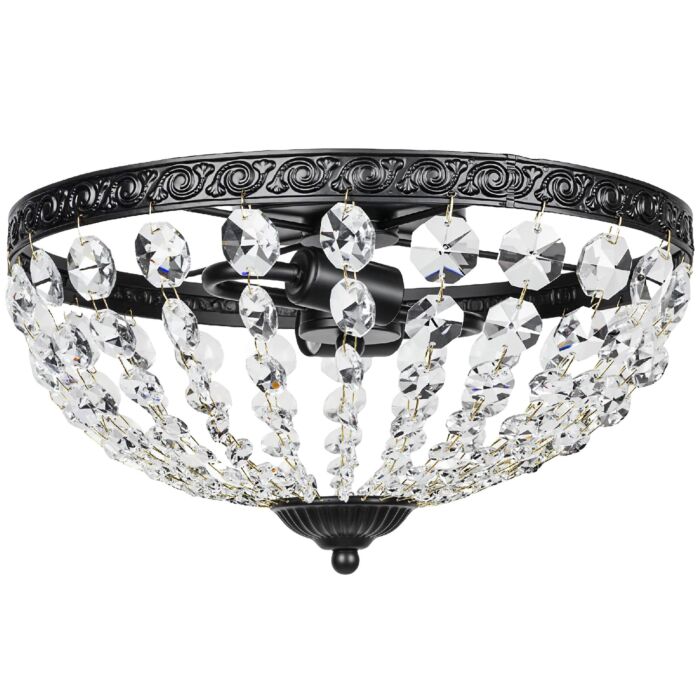 Homcom Crystal Chandelier Ceiling Light With 168 Octagonal Beads, Vintage 2-light Flush Mount Ceiling Light For Living Room, Bedroom, Hallway, Dining Room, Black