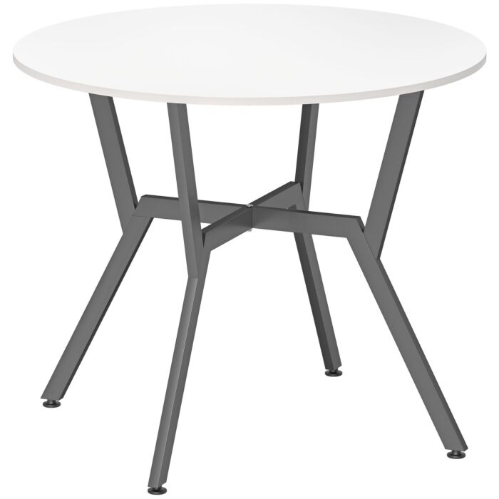 Homcom Dining Table, Round Kitchen Table With Black Legs For Living Room, Dining Room 90 X 76 Cm, High Gloss White