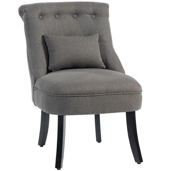 Sink into something comfortable without sacrificing on your precious home space with this accent chair, from HOMCOM. Linen-look fabric, the curved wooden legs and delicate button tufting on the back evokes a vintage style - a statement in any setting. Soft cushioned seat and curved backrest for comfort and support. Something different for this season and beyond.