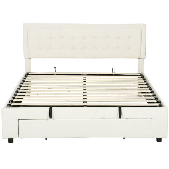 Homcom King Size Ottoman Bed Frame, With Front Drawer - Cream