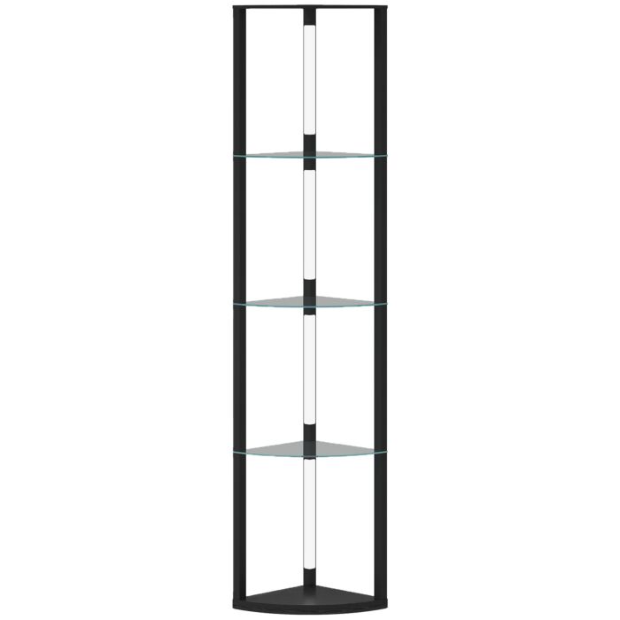Discover the HOMCOM corner floor lamp, a chic fusion of lighting and storage with five stylish, fan-shaped tiers. Excellent for showcasing books, plants, or ornaments, this standing lamp beautifully illuminates your treasures with its frosted glass shelves. Enjoy effortless control over ambiance with three brightness settings, easily adjusted via a foot switch. Great for any modern home.