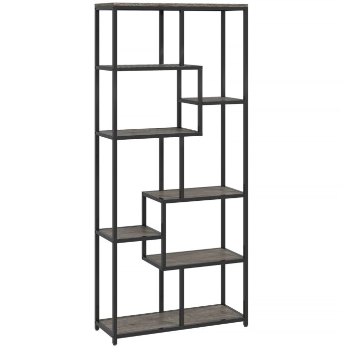 Homcom Seven-tier Geometric Bookcase - Grey/black